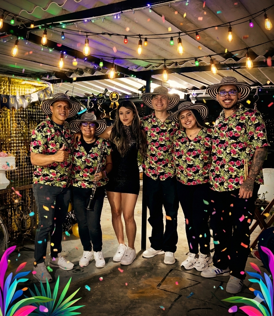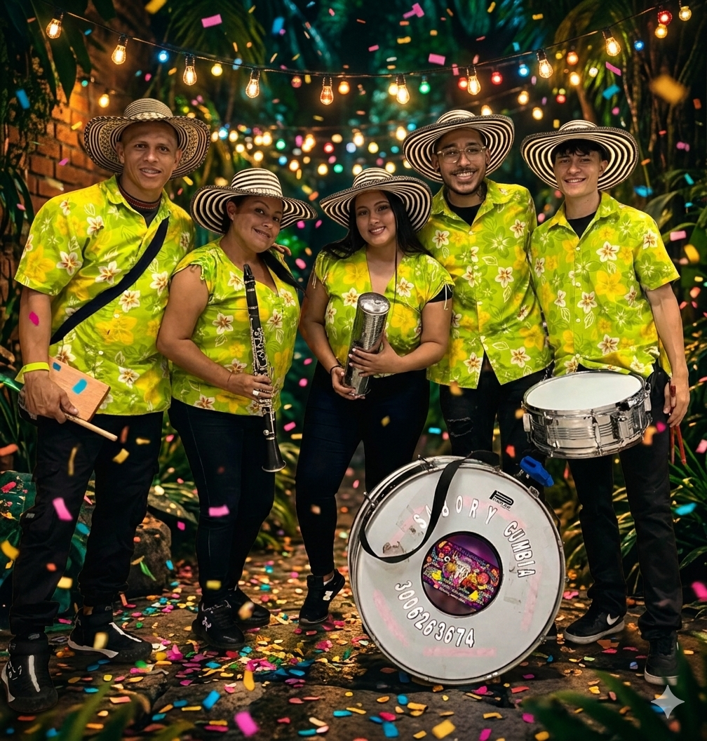 Somos ritmo, tradición y alegría que se siente desde el primer golpe de tambor. En Sabor y Cumbia llevamos la esencia de la música colombiana a cada evento, contagiando energía, baile y sonrisas.